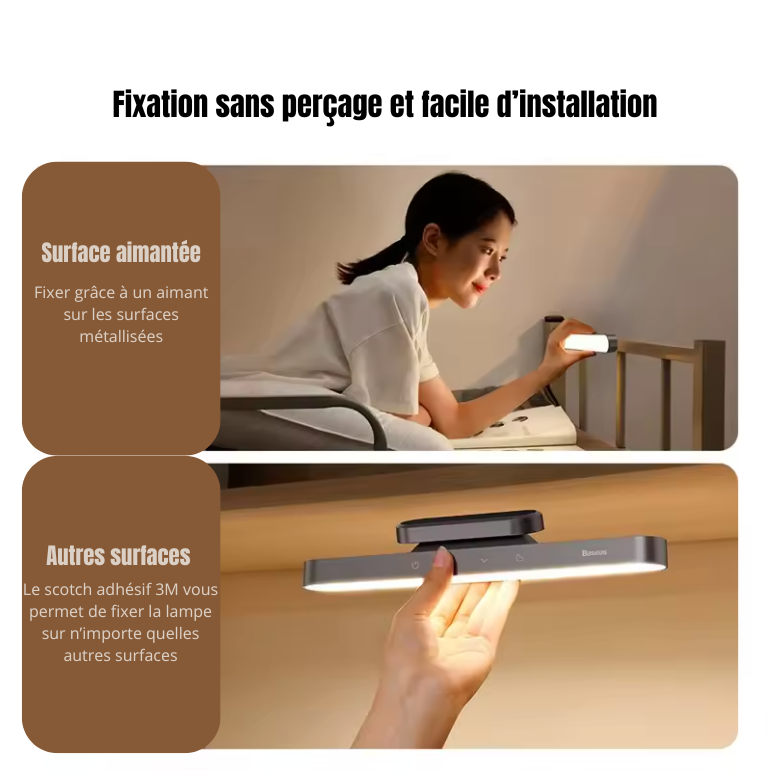 Avec son fixation 3M, son socle magnétique et ses commandes intuitives, cette lampe LED s’installe et s’utilise en toute simplicité. Changez l’intensité lumineuse, ajustez l’angle ou activez la minuterie en un seul geste